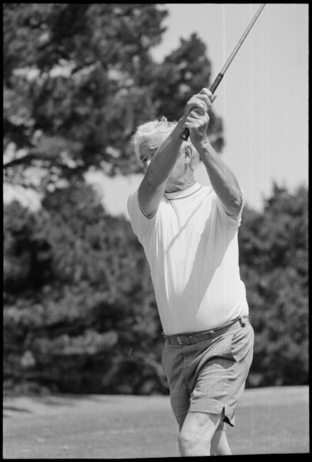Date31 October 1975Reference Numberphoto gcc-36369DescriptionMount Maunganui player Hugh Jones at the annual veterans match between the Mount Maunganui and Tauranga golf clubs. Published 31 October 1975.FormatNegativePhysical Description35mm black-and-white negative (7/12)Photographer/CreatorBay of Plenty Times