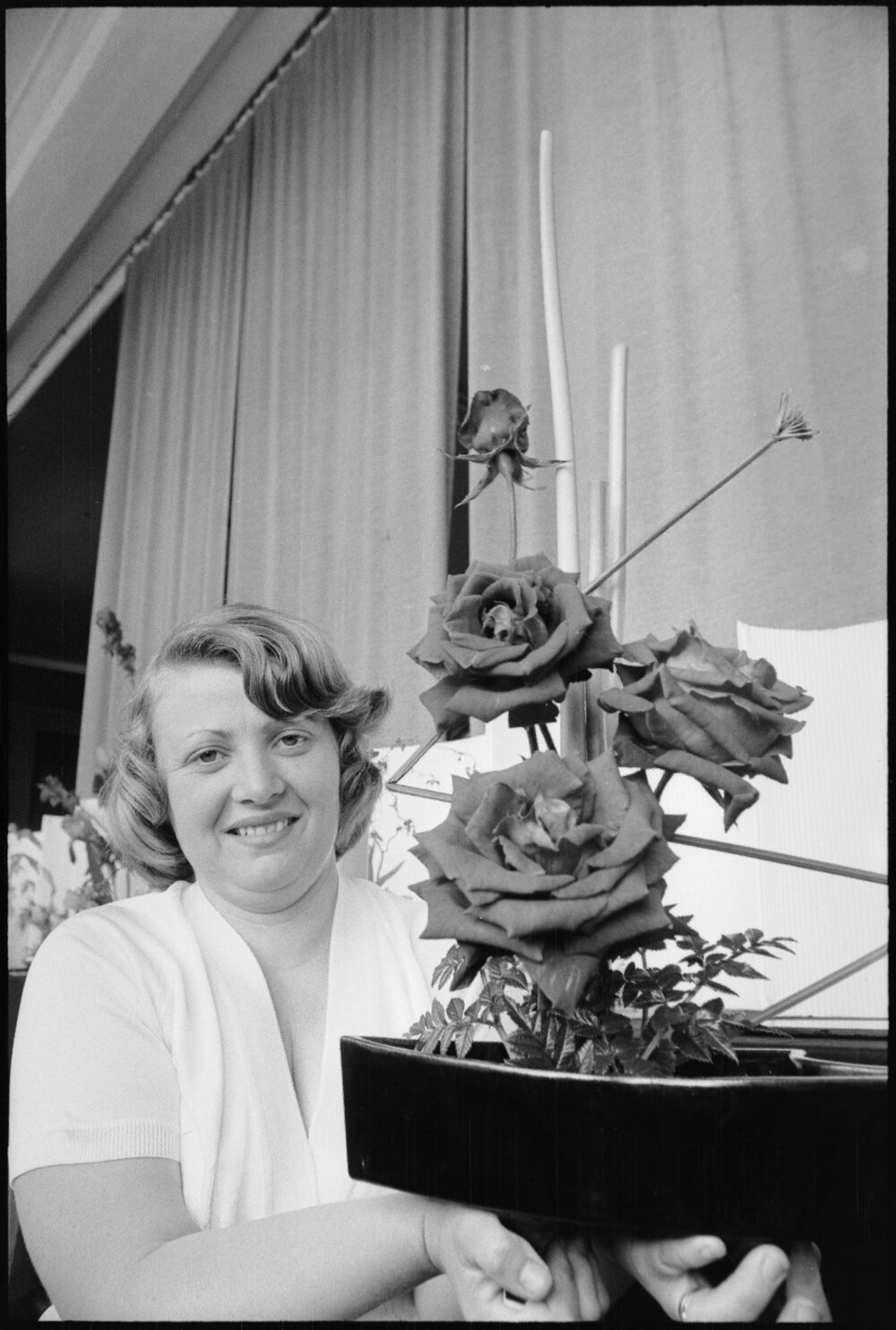 Date1 November 1975Reference Numberphoto gcc-36406DescriptionMrs Barbara Robinson with her entry at the Katikati Flower Show. Published 1 November 1975.FormatNegativePhysical Description35mm black-and-white negative (2/6)Photographer/CreatorBay of Plenty Times
