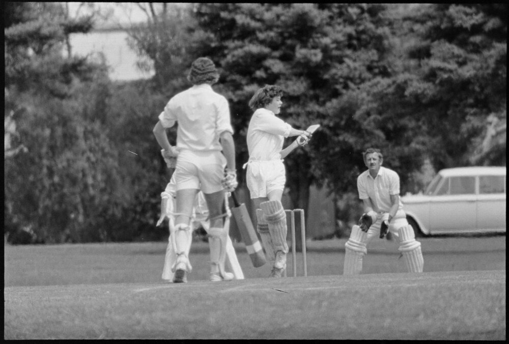 Date3 November 1975Reference Numberphoto gcc-36444DescriptionIan Hutcheson, the College batsman, plays at a ball in the Tauranga - Te Puke senior cricket match against Te Puke at the College grounds on Saturday. Hutcheson, together with John Bracewell (left). The Te Puke wicket-keeper, Brian Sherwood, is the new Bay Colts selector. Published 3 November 1975.FormatNegativePhysical Description35mm black-and-white negative (1/6)Photographer/CreatorBay of Plenty Times