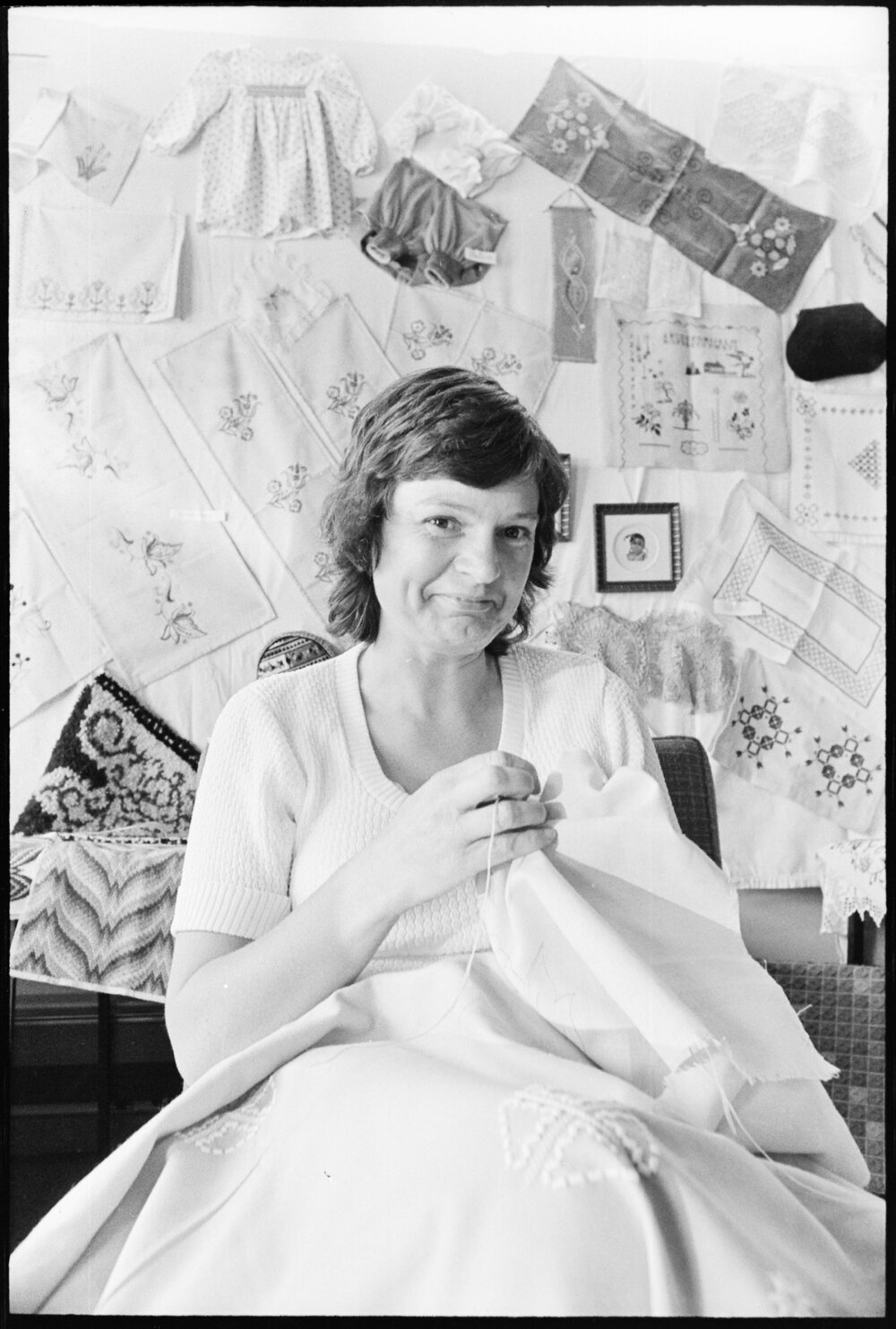 Date4 November 1975Reference Numberphoto gcc-36465DescriptionMrs Gay Davidson with her embroidery, a hobby she took up at night school. Published 4 November 1975FormatNegativePhysical Description35mm black-and-white negative (1/10)Photographer/CreatorBay of Plenty Times