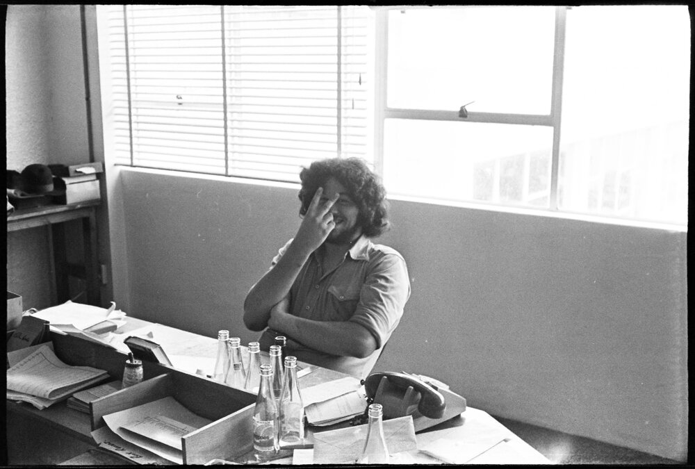Date5 November 1975Reference Numberphoto gcc-36489DescriptionMan sitting at a desk. Published 4 November 1975.FormatNegativePhysical Description35mm black-and-white negative (5/6)Photographer/CreatorBay of Plenty Times