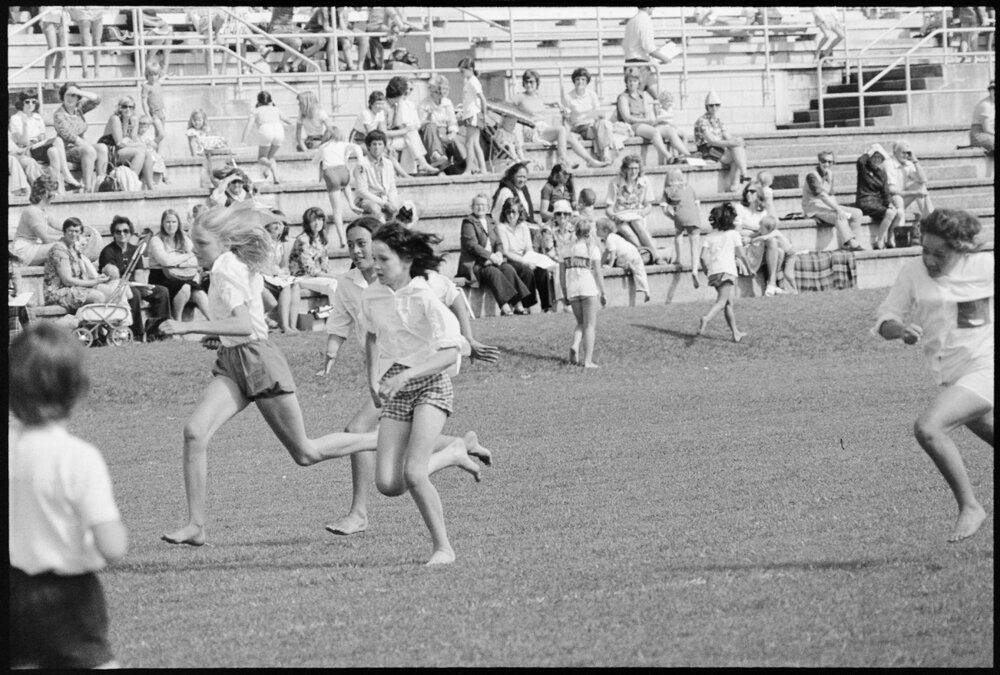 Date6 November 1975Reference Numberphoto gcc-36527DescriptionChildren compete at Tauranga primary schools' annual athletics championships, held at the Tauranga Domain. Published 6 November 1975.FormatNegativePhysical Description35mm black-and-white negative (1/9)Photographer/CreatorBay of Plenty Times
