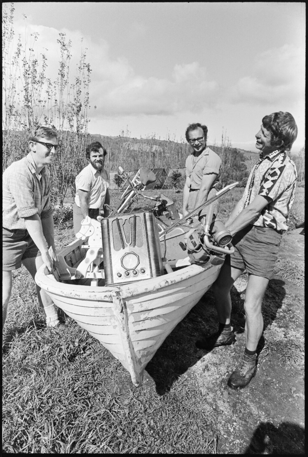 Date6 November 1975Reference Numberphoto gcc-36550DescriptionFrom left, Messrs John Stevens, Robert Anderson, Adrian Blom and Russell Bell with a boatload of items for selling at the Ōmokoroa-Te Puna Lions Club sale.Published 6 November 1975.FormatNegativePhysical Description35mm black-and-white negative (6/9)Photographer/CreatorBay of Plenty Times
