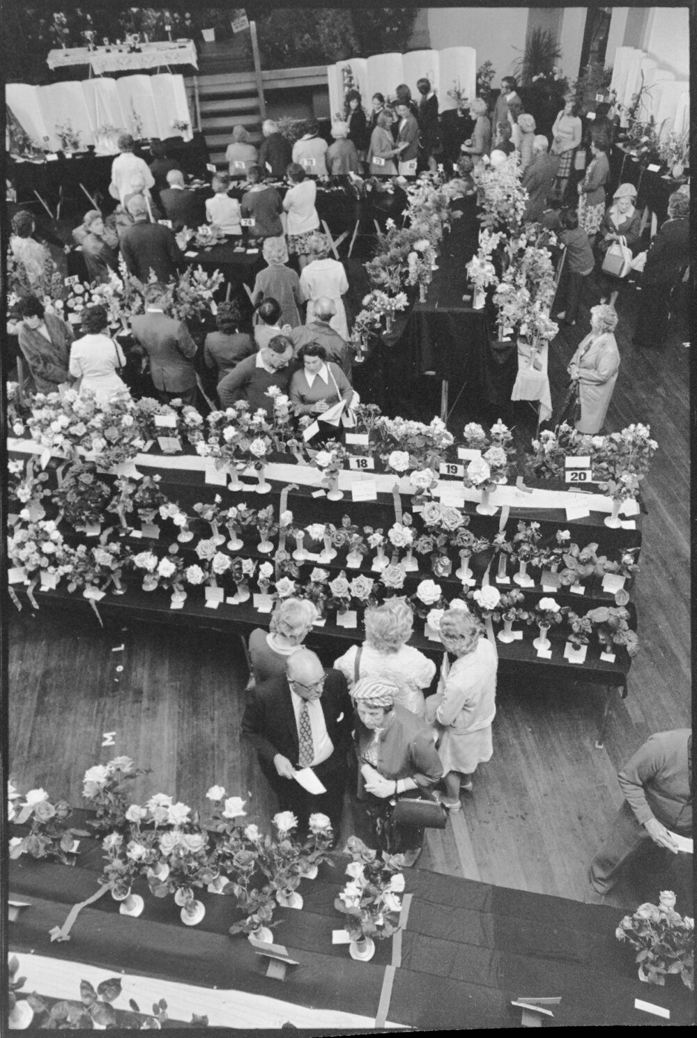 Date6 November 1975Reference Numberphoto gcc-36557DescriptionAn view of the display from up high at the Festival of Gardens and Roses show in the Tauranga Town Hall. Published 6 November 1975.FormatNegativePhysical Description35mm black-and-white negative (4/6)Photographer/CreatorBay of Plenty Times