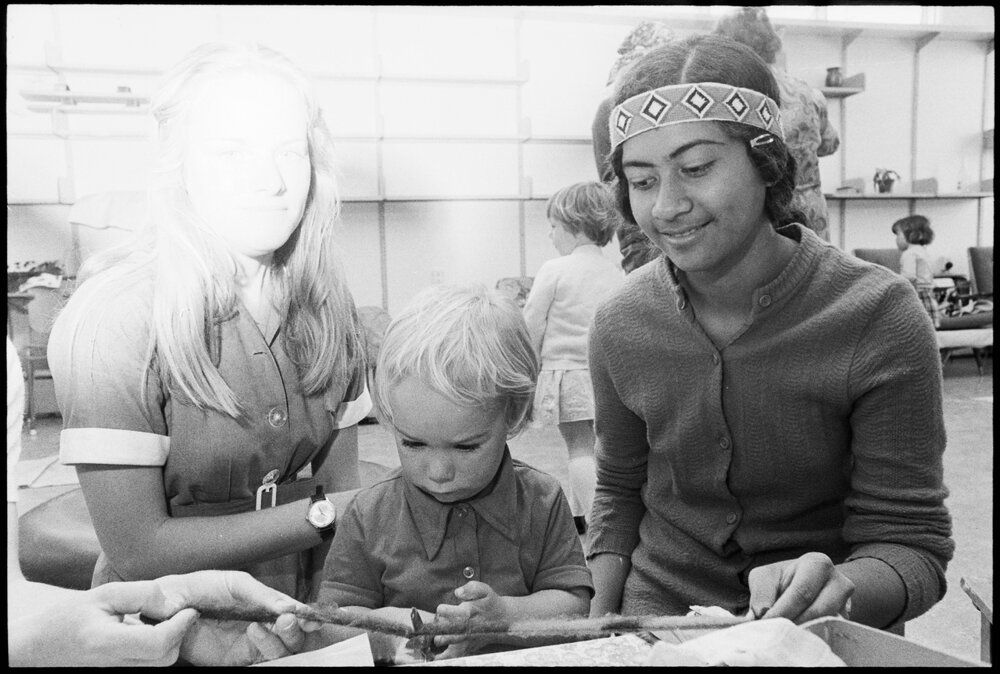 Date6 November 1975Reference Numberphoto gcc-36560DescriptionKingsley Smith, 2, with two Tauranga Girls College pupils at the Kindergarten fundraising fair, Alice Norman (right), who will be performing and Sarah Phillips. Published 6 November 1975FormatNegativePhysical Description35mm black-and-white negative (1/3)Photographer/CreatorBay of Plenty Times