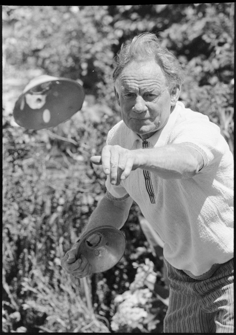 Date6 November 1975Reference Numberphoto gcc-36563DescriptionCliff Dashfield demonstrates throwing a disk, a new sport invented by a retired Tauranga farmer. Published 6 November 1975.FormatNegativePhysical Description35mm black-and-white negative (1/17)Photographer/CreatorBay of Plenty Times