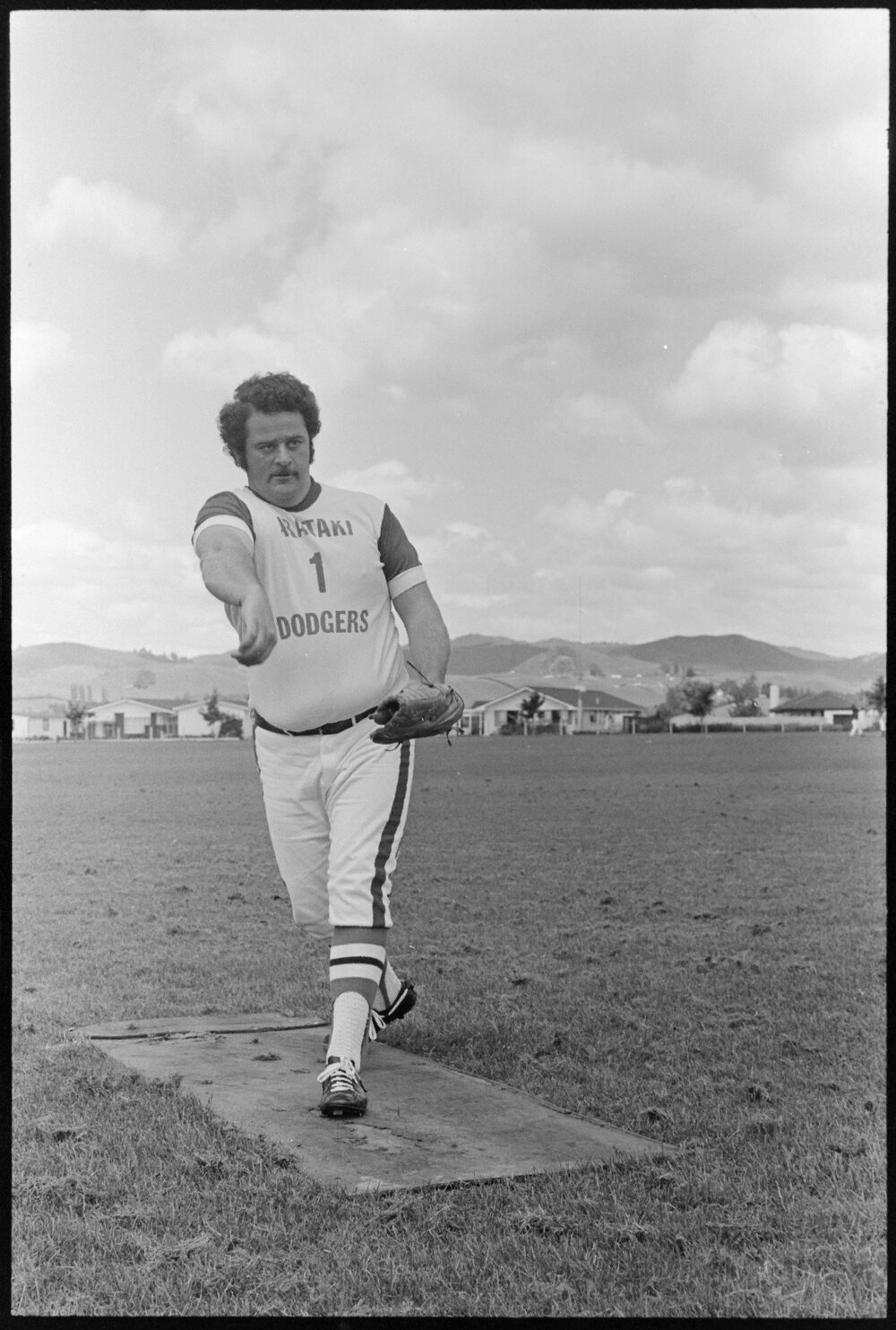 Date10 November 1975Reference Numberphoto gcc-36639DescriptionSoftball player Dean Dormer pitching Arataki Dodgers to success on Saturday. He also pitched for Bay of Plenty who won the representative tournament at North Shore. Published 10 November 1975.FormatNegativePhysical Description35mm black-and-white negative (4/9)Photographer/CreatorBay of Plenty Times