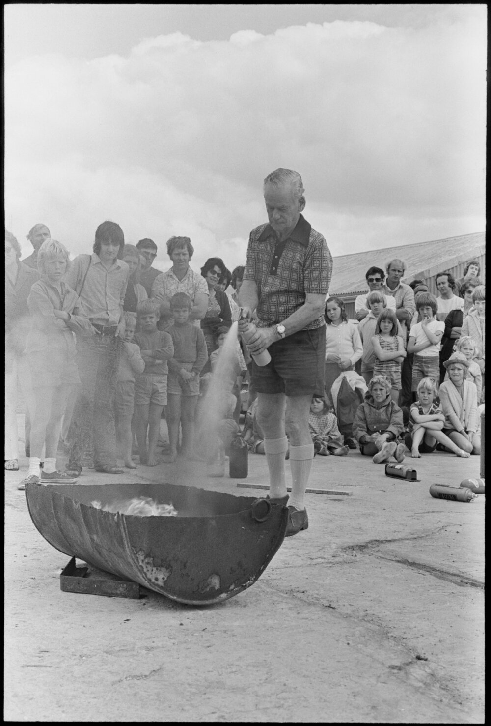 Date12 November 1975Reference Numberphoto gcc-36712DescriptionMr Bob Williams a fire prevention officer for the Tauranga United Fire Board, directs 13-year-old Lisa Fage who is using a dry powder fire extinguisher. The demonstration was part of a bigger one by the air and sea rescue division of the Tauranga police. Published 12 November 1975FormatNegativePhysical Description35mm black-and-white negative (12/15)Photographer/CreatorBay of Plenty Times