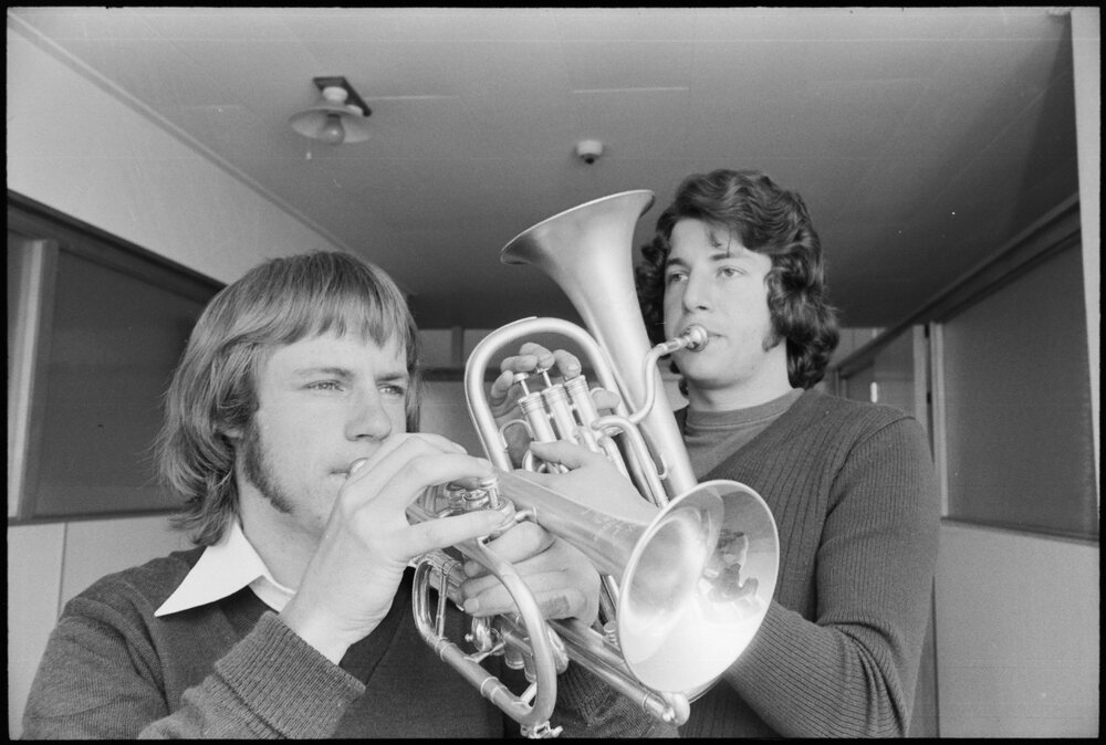 Date12 November 1975Reference Numberphoto gcc-36717DescriptionJohn Rodgers (left) and Peter Robinson, have been included in the 48-member 1976 National Youth Band. Published 12 November 1975.FormatNegativePhysical Description35mm black-and-white negative (2/6)Photographer/CreatorBay of Plenty Times