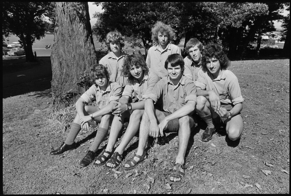 Date12 November 1975Reference Numberphoto gcc-36741DescriptionWith their freshly presented gold Duke of Edinburgh medals by the chairman of the board of governors of Tauranga Boys College. From left (front): Steven Cameron, David MacPhail, Timothy Jensen. Back row: Philip Lowe, Keith McDell, Graham Morris, Keith Turner. Published 12 November 1975.FormatNegativePhysical Description35mm black-and-white negative (5/8)Photographer/CreatorBay of Plenty Times