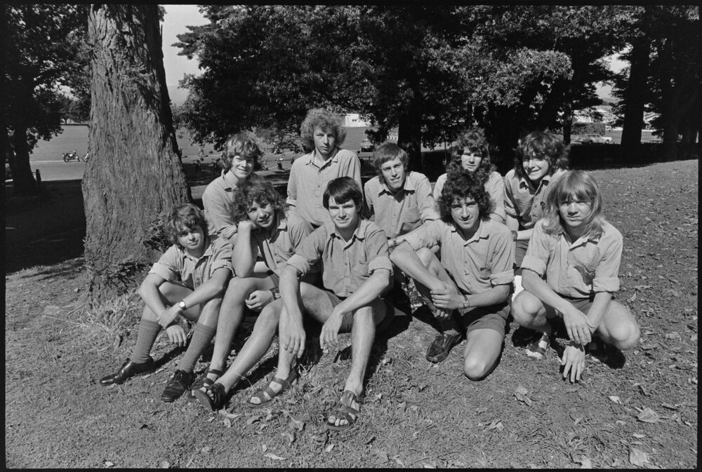 Date12 November 1975Reference Numberphoto gcc-36743DescriptionWith their freshly presented gold Duke of Edinburgh medals by the chairman of the board of governors of Tauranga Boys College. From left (front): Steven Cameron, David MacPhail, Timothy Jensen. Back row: Philip Lowe, Keith McDell, Graham Morris, Keith Turner. Published 12 November 1975.FormatNegativePhysical Description35mm black-and-white negative (7/8)Photographer/CreatorBay of Plenty Times
