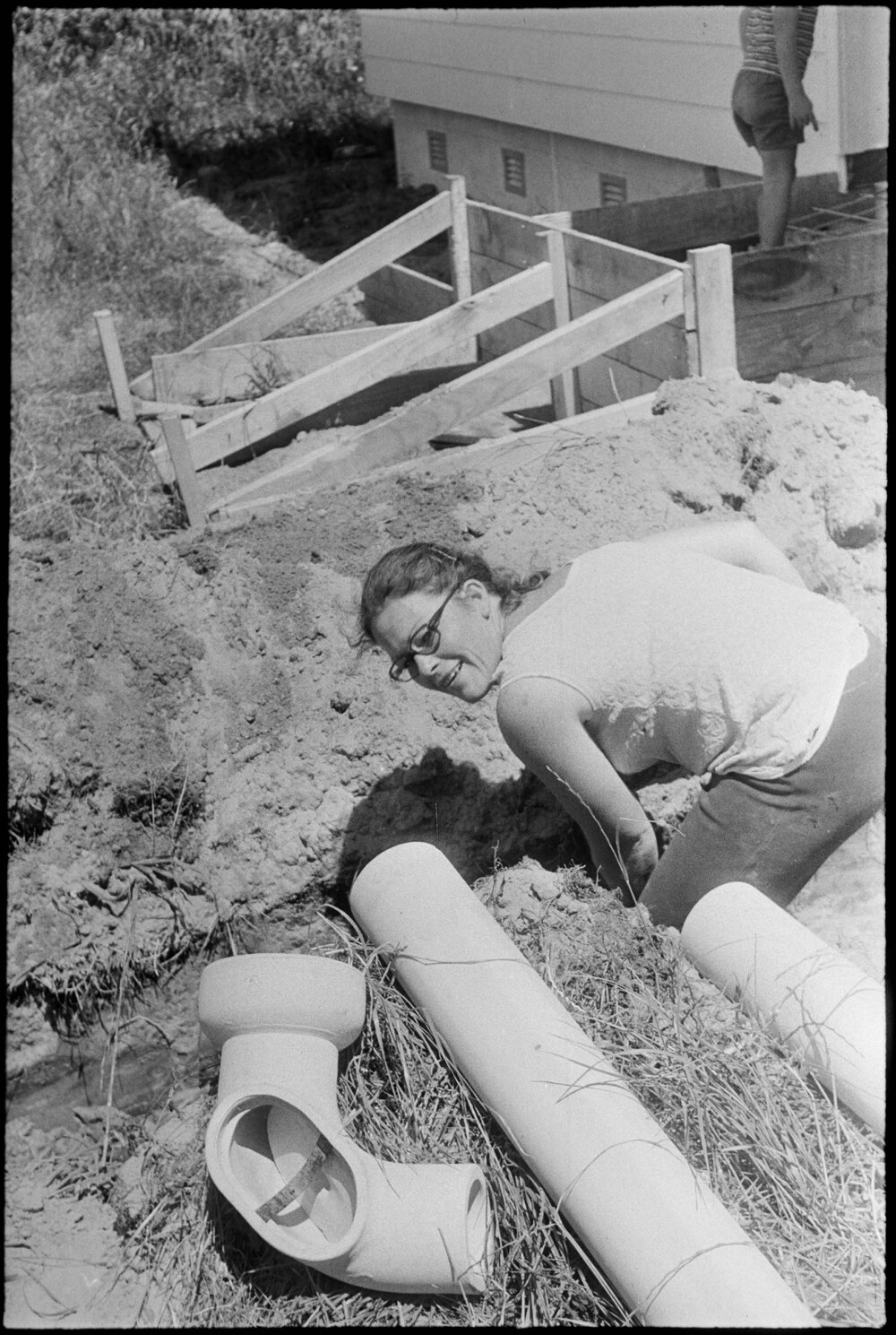 Mrs Colleen Richardson, once a maternity sister, now a qualified drainlayer. Published 13 November 1975.