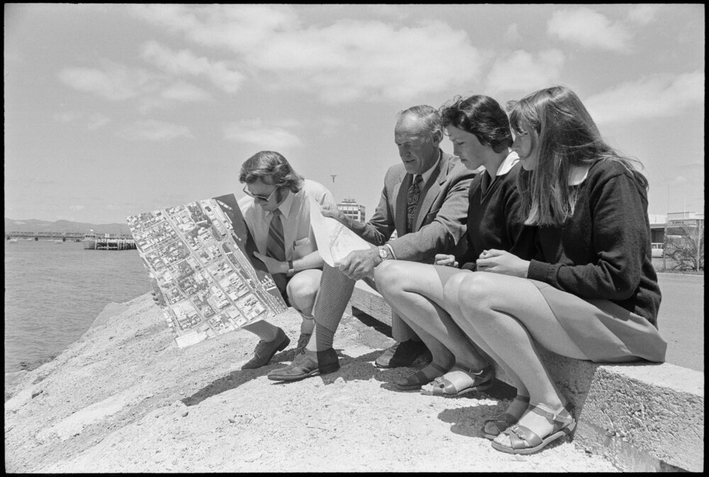 Date13 November 1975Reference Numberphoto gcc-36786DescriptionLooking at the aerial photograph of the site of the proposed regional arts and community centre on site are from left, Messrs Addison and Wills and Remonde Mackay and Amanda Entwistle. Published 13 November 1975.FormatNegativePhysical Description35mm black-and-white negative (1/11)Photographer/CreatorBay of Plenty Times
