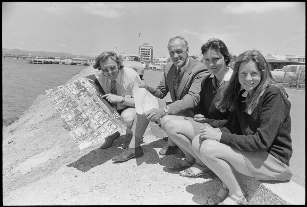 Date13 November 1975Reference Numberphoto gcc-36789DescriptionLooking at the aerial photograph of the site of the proposed regional arts and community centre on site are from left, Messrs Addison and Wills and Remonde Mackay and Amanda Entwistle. Published 13 November 1975.FormatNegativePhysical Description35mm black-and-white negative (4/11)Photographer/CreatorBay of Plenty Times