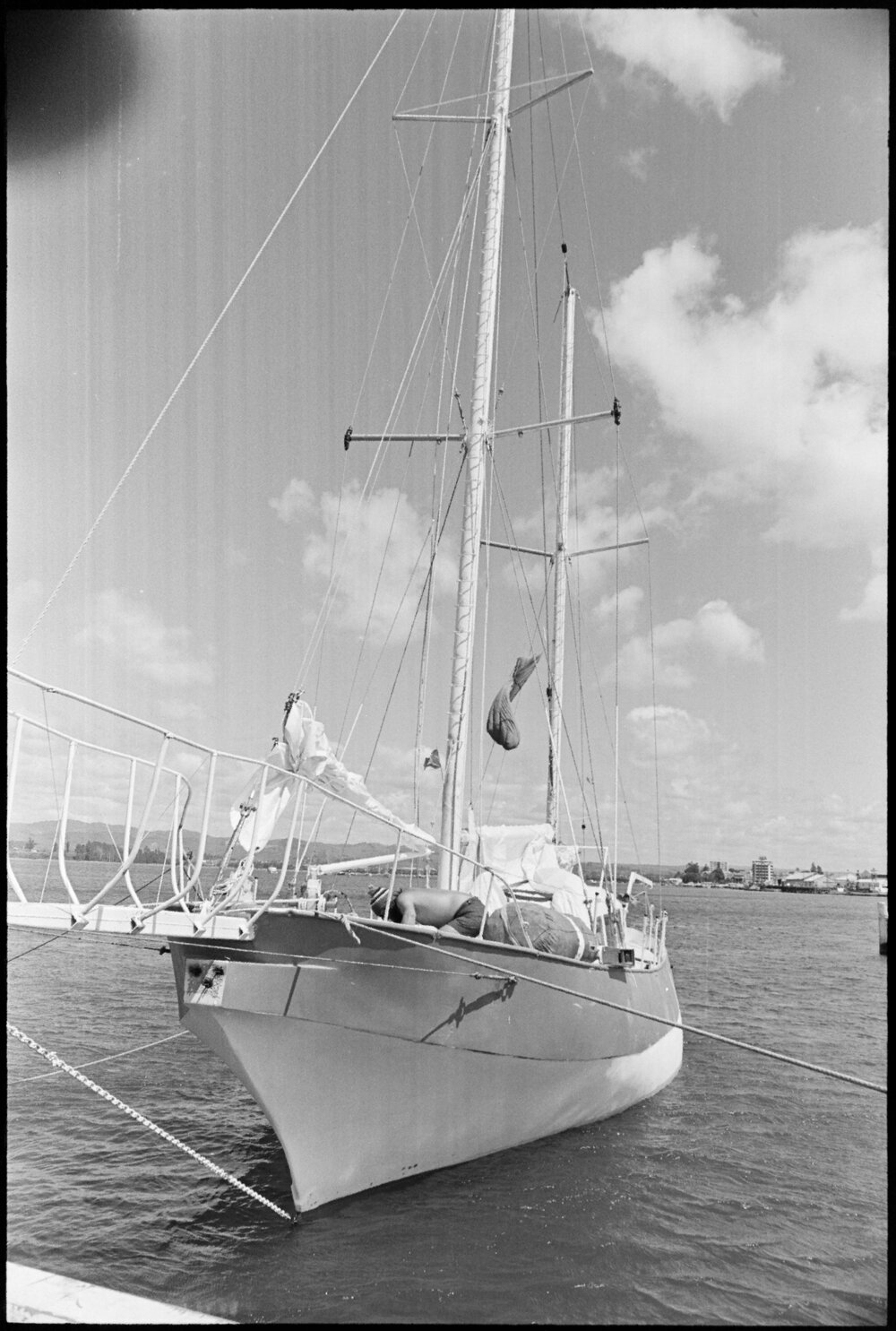 Date14 November 1975Reference Numberphoto gcc-36842DescriptionAustralian boat Phoebyes, a concrete ketch, before leaving Whangārei and Sydney. Published 14 November 1975.FormatNegativePhysical Description35mm black-and-white negative (8/9)Photographer/CreatorBay of Plenty Times