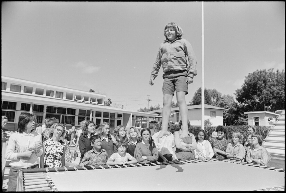 Date15 November 1975Reference Numberphoto gcc-36859DescriptionKevin Wenham enjoys the trampoline at the Kākā Street IHC School fair. Published 15 November 1975FormatNegativePhysical Description35mm black-and-white negative (5/6)Photographer/CreatorBay of Plenty Times