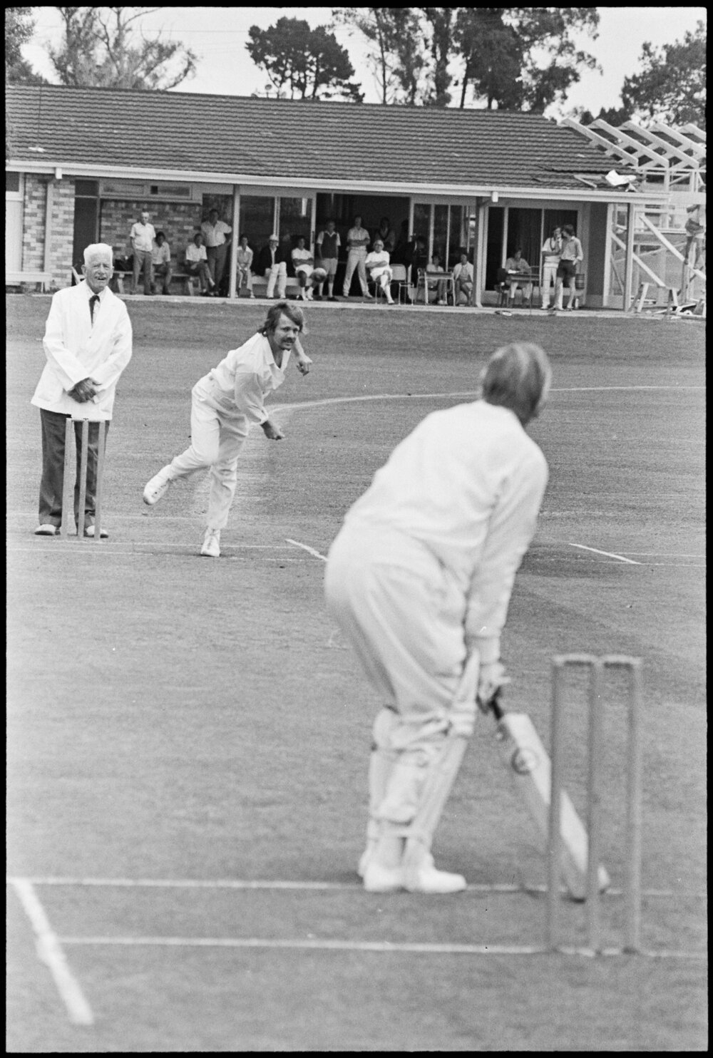 Date15 November 1975Reference Numberphoto gcc-36873DescriptionClergymen and laymen participating in Holy Trinity (Angels), v. the Rest (Demons) cricket match as part of the church's centennial celebrations. Published 15 November 1975FormatNegativePhysical Description35mm black-and-white negative (2/8)Photographer/CreatorBay of Plenty Times