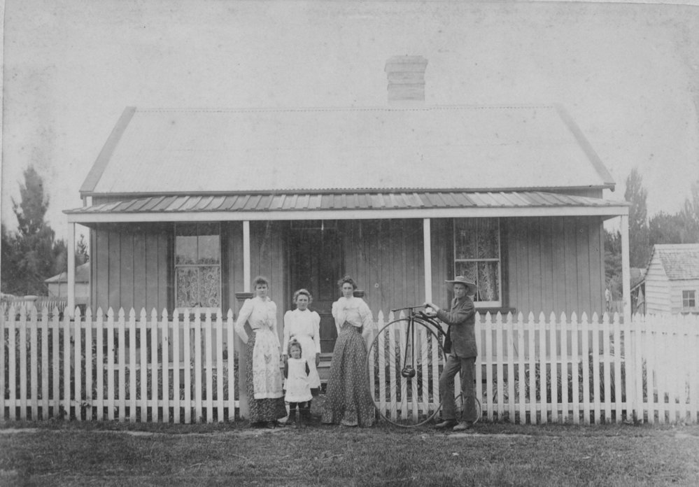 Alice, Emma and Willie Bickers (with penny farthing) late 1890s. Te Ao Mārama - Tauranga City Libraries Photo 02-197