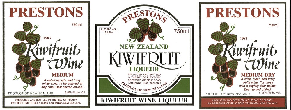 The second, the Preston family's kiwifruit wine label, 'Prestons' of Belk Road, Tauriko, began in 1980 after converting a 70 hectare dairy farm. Their winemaking methods were based on those developed by the Department of Scientific and Industrial Research (DSIR). Their sparkling kiwifruit wine was launched in Tauranga in December 1983. They also produced a kiwifruit wine liqueur.