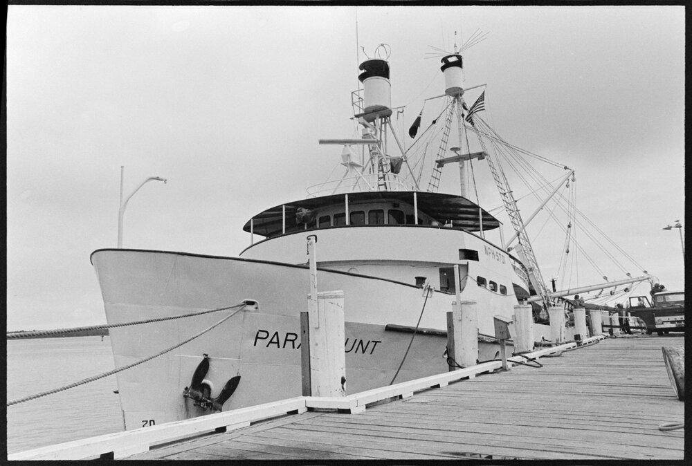 Date16 February 1974Reference Numberphoto gcc-24704DescriptionTrawler Paramount berthed at Mount Maunganui during brief stay to repair a broken winch power block. The ship was engaged in a 12 month survey in NZ waters to determine if there were enough fish to support a canning plant. Published 16 February 1974.FormatNegativePhysical Description35mm black-and-white negative (1/3)Photographer/CreatorBay of Plenty Times