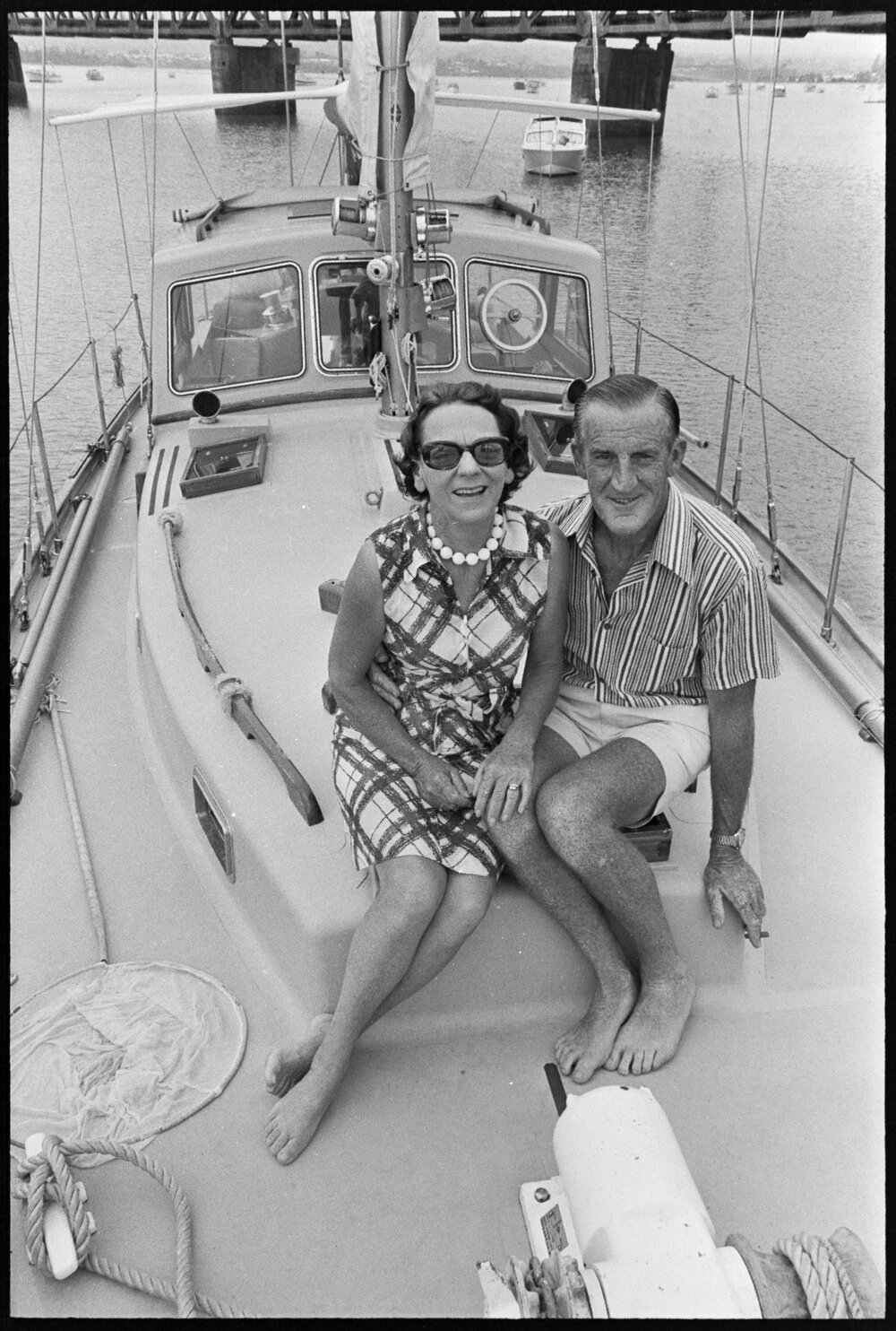 Date16 February 1974Reference Numberphoto gcc-24710DescriptionBillie and Harvey Drew (former borough councillor) aboard boat Billie-D, while visiting Tauranga during their boating holiday around New Zealand. Published 16 February 1974.FormatNegativePhysical Description35mm black-and-white negative (1/3)Photographer/CreatorBay of Plenty Times