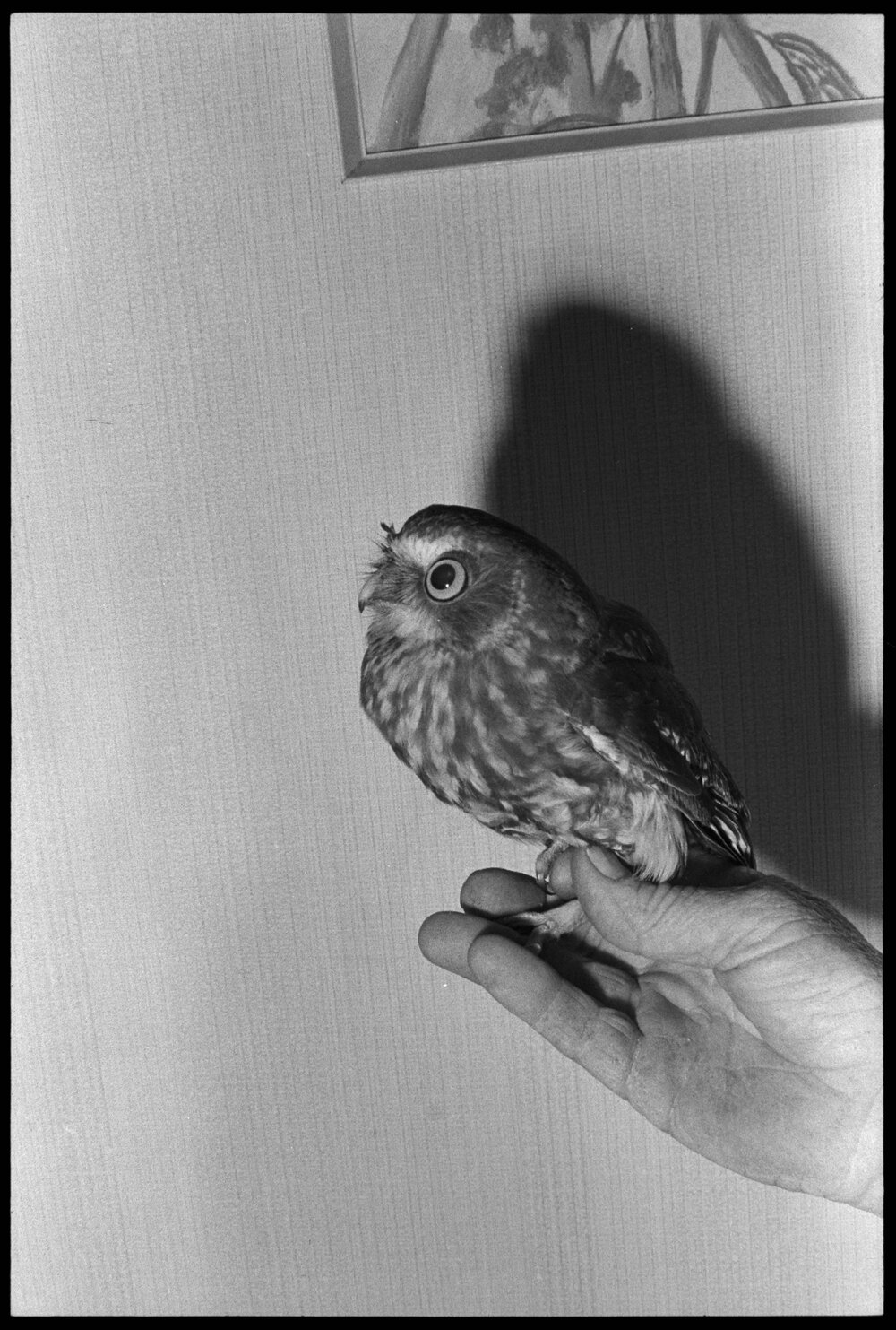 Date16 February 1974Reference Numberphoto gcc-24719DescriptionMorepork with damaged eye recovers from a concussion, after being hit by a car. Photo taken prior to its release back into the wild. Published 16 February 1974.FormatNegativePhysical Description35mm black-and-white negative (1/3)Photographer/CreatorBay of Plenty Times