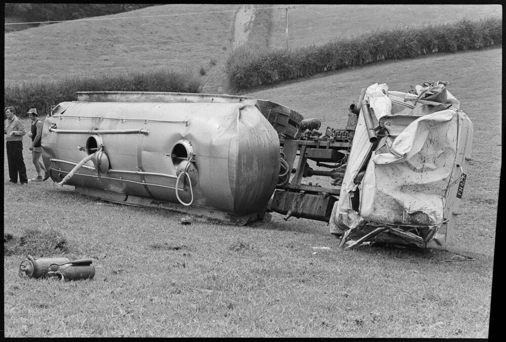 Date18 February 1974Reference Numberphoto gcc-24727DescriptionMilk tanker accident at Pahoia. Published 18 February 1974.FormatNegativePhysical Description35mm black-and-white negative (3/3)Photographer/CreatorBay of Plenty Times