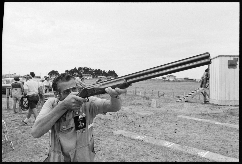 Date18 February 1974Reference Numberphoto gcc-24734DescriptionRon Wales of the Waitematā Gun Club. Not published.FormatNegativePhysical Description35mm black-and-white negative (1/3)Photographer/CreatorBay of Plenty Times