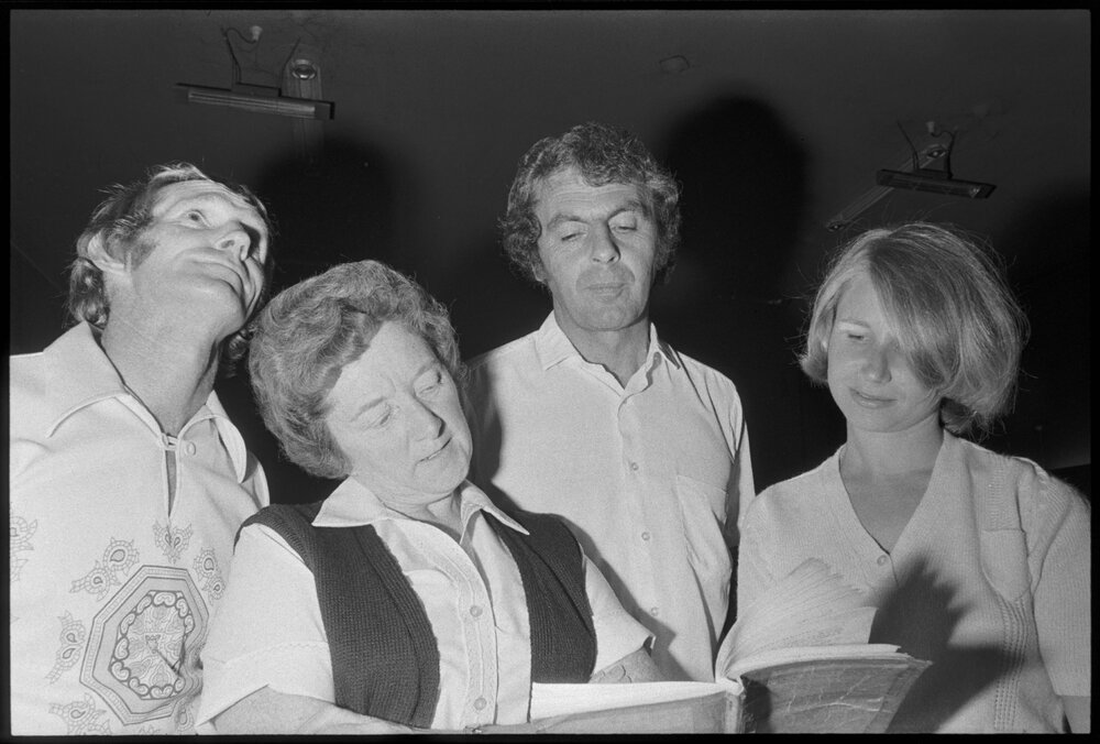 Date19 February 1974Reference Numberphoto gcc-24753DescriptionAuditions for comedy "Good Night Mrs Puffin" at the Tauranga Repertory Threatre. From left: Tony Nichols, Dot Twaddle, John Berentson, Jan Houston. Published 19 February 1974.FormatNegativePhysical Description35mm black-and-white negative (2/3)Photographer/CreatorBay of Plenty Times