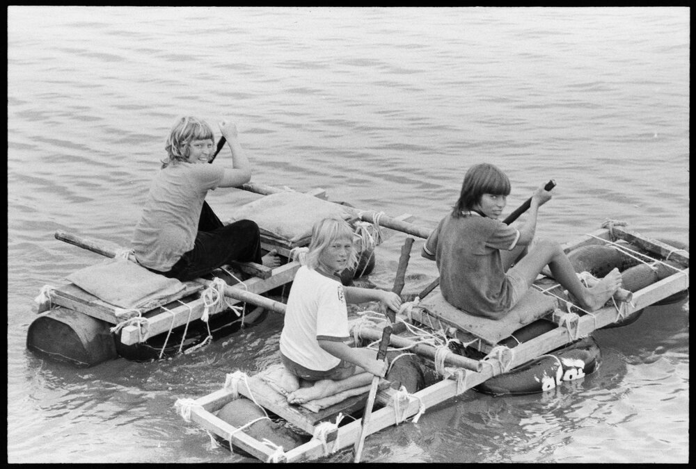 Date20 February 1974Reference Numberphoto gcc-24768DescriptionTesting homemade raft for the annual Compass raft race on the Wairoa River. Pictured from left: Tom Gatward, Dennis Grimmett and Russell Betton. Published 20 February 1974.FormatNegativePhysical Description35mm black-and-white negative (2/3)Photographer/CreatorBay of Plenty Times