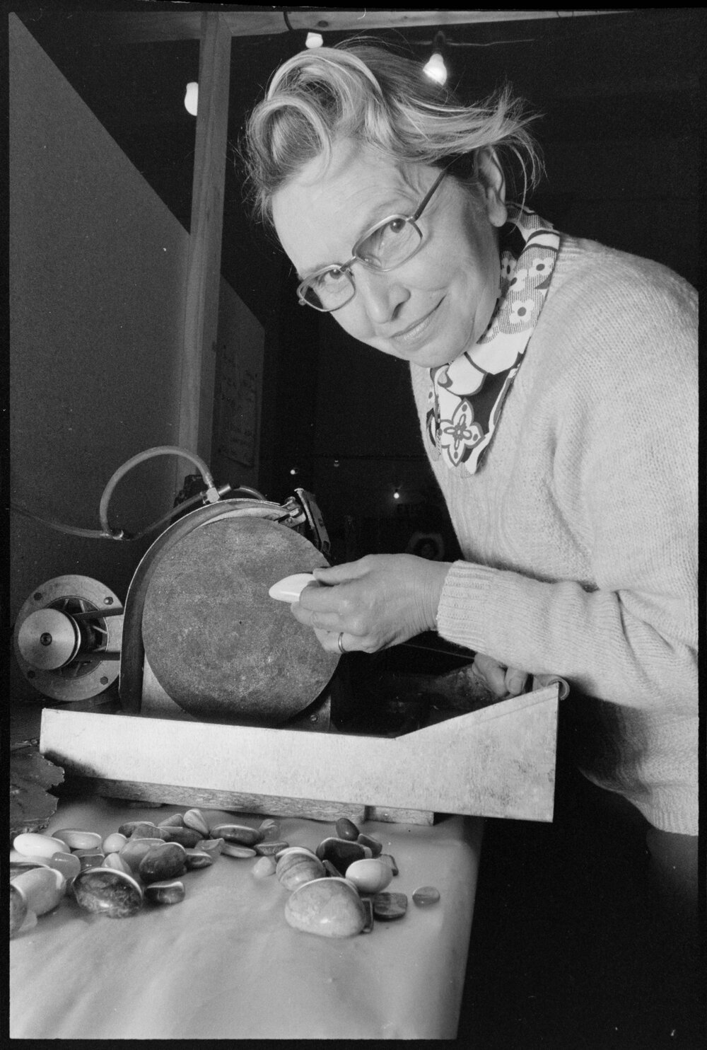 Date28 August 1974Reference Numberphoto gcc-24818DescriptionD. Hunter demonstrating rock polishing at the 3rd annual Hobbies Exhibition at the Tauranga Town Hall. Published 28 August 1974.FormatNegativePhysical Description35mm black-and-white negative (1/6)Photographer/CreatorBay of Plenty Times