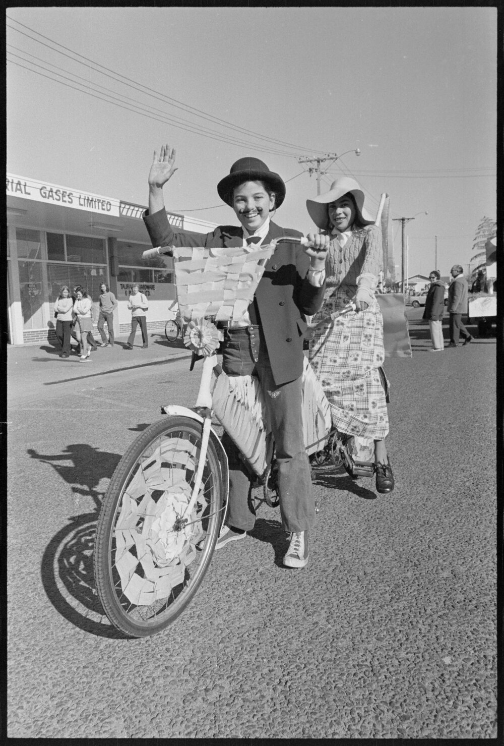 Date31 August 1974Reference Numberphoto gcc-24886DescriptionLisa Page, 12, escorts Sonja Lunjevich, 11, along Cameron Road, at the Orange Festival float parade. Published 31 August 1974.FormatNegativePhysical Description35mm black-and-white negative (2/3)Photographer/CreatorBay of Plenty Times