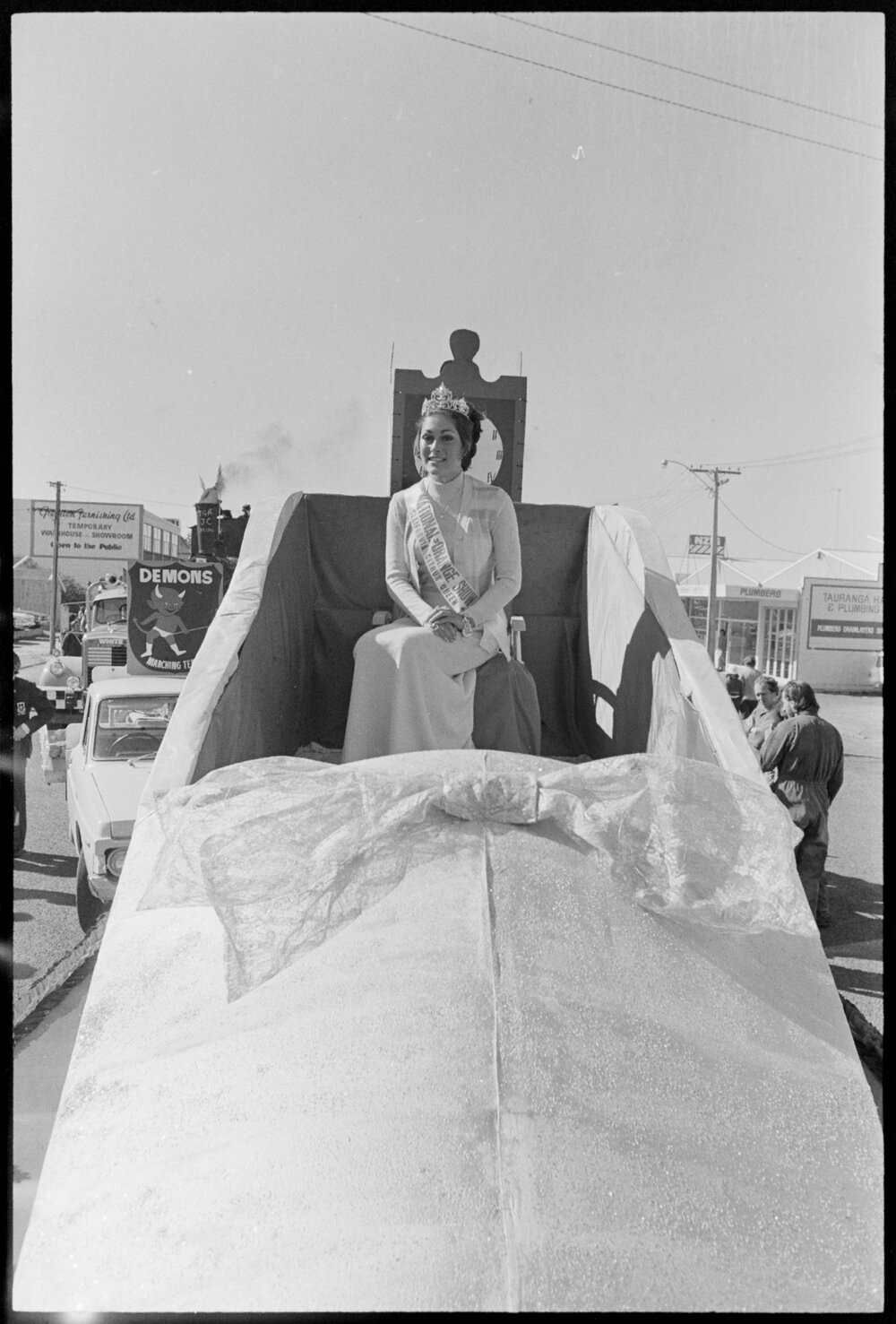 Michelle Sisk - Orange Festival parade float, 1974 (31 August 1974). Pae Korokī, accessed 06/04/2026, https://paekoroki.tauranga.govt.nz/nodes/view/111770