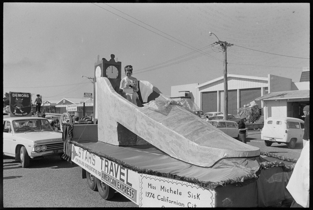 Michelle Sisk - Orange Festival parade float, 1974 (31 August 1974). Pae Korokī, accessed 06/04/2026, https://paekoroki.tauranga.govt.nz/nodes/view/111771