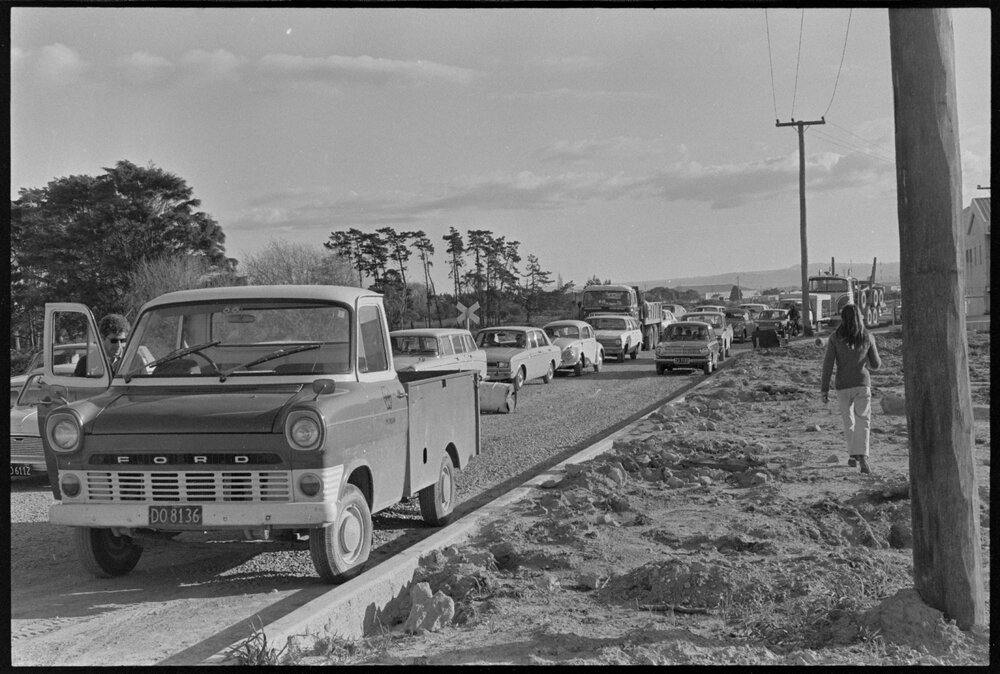 Drivers wait in traffic after accident (31 August 1974). Pae Korokī, accessed 06/04/2026, https://paekoroki.tauranga.govt.nz/nodes/view/111788