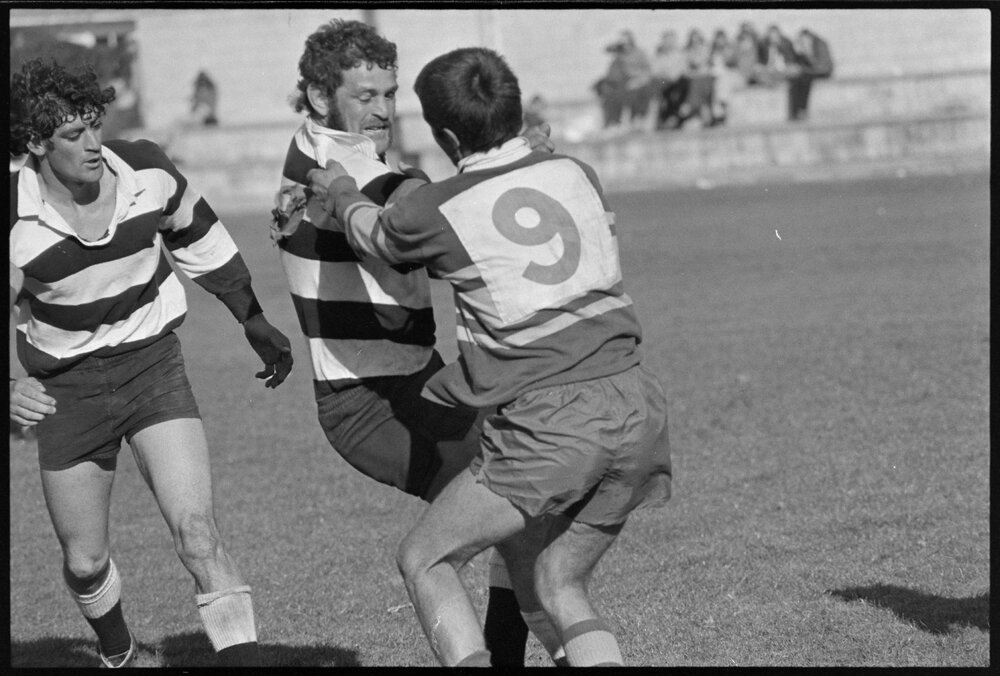 Date3 September 1974Reference Numberphoto gcc-24952DescriptionRugby match - Tauranga verses Ōpōtiki, at Tauranga Domain. Not published.FormatNegativePhysical Description35mm black-and-white negative (3/3)Photographer/CreatorBay of Plenty Times