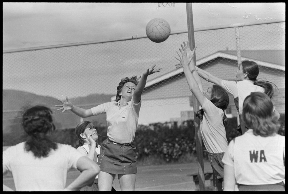 Date3 September 1974Reference Numberphoto gcc-24966DescriptionTauranga Under 18 verses the visiting Australian Under 18, at the Cliff Road courts. Photo includes: Debbie Quinn (Tauranga goalkeeper), Doreen Marsden (goal defence) and Denise Bates (Australian goal shoot). Published 3 September 1974.FormatNegativePhysical Description35mm black-and-white negative (3/3)Photographer/CreatorBay of Plenty Times