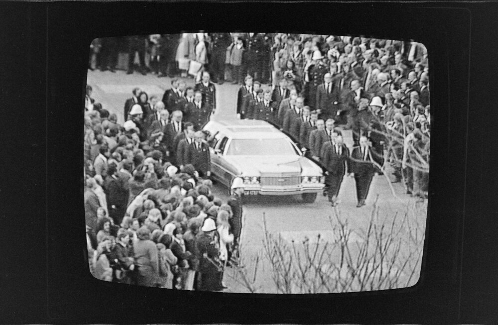 Date4 September 1974Reference Numberphoto gcc-25036DescriptionLate Prime Minister Normal Kirk's funeral, photograph of television broadcast. Parliamentary colleagues flank vehicle carrying coffin. Published 4 September 1974.FormatNegativePhysical Description35mm black-and-white negative (11/12)Photographer/CreatorBay of Plenty Times