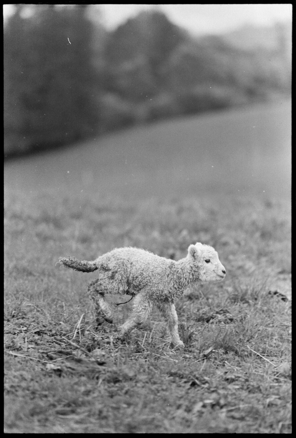 Date12 September 1974Reference Numberphoto gcc-25215DescriptionLamb on G. L. Mackersey's farm. Not published. FormatNegativePhysical Description35mm black-and-white negative (1/6)Photographer/CreatorBay of Plenty Times