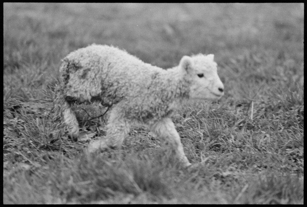 Date12 September 1974Reference Numberphoto gcc-25216DescriptionLamb on G. L. Mackersey's farm. Not published. FormatNegativePhysical Description35mm black-and-white negative (2/6)Photographer/CreatorBay of Plenty Times