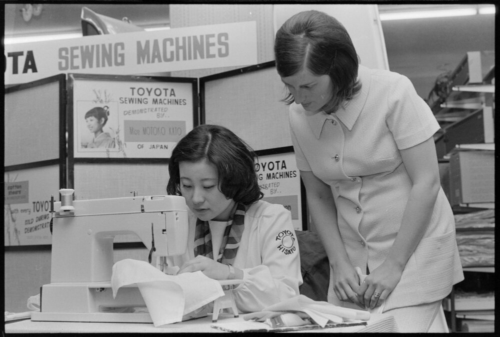Date19 September 1974Reference Numberphoto gcc-25423DescriptionHisayo Tsunashima, visiting from Japan, demonstrates machine embroidery. Pictured from left: Hisayo Tsunashima, and S. Pinny. Published 19 September 1974.FormatNegativePhysical Description35mm black-and-white negative (1/9)Photographer/CreatorBay of Plenty Times