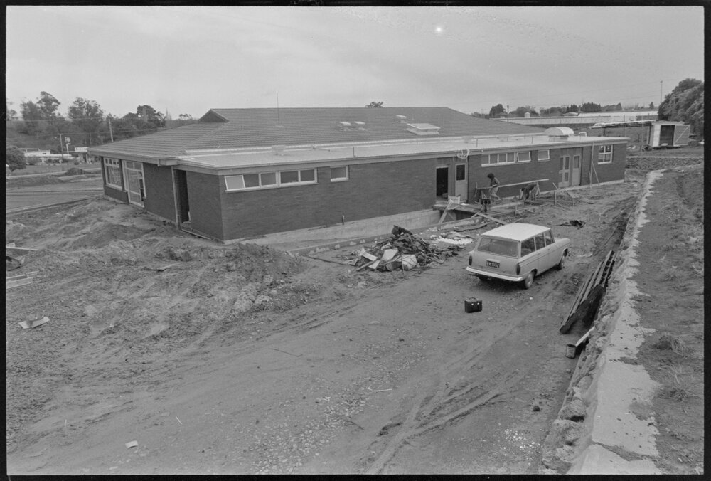 Date19 September 1974Reference Numberphoto gcc-25446DescriptionTe Puna Tavern nearing completion, according to foreman J. R. Sharp. Not published.FormatNegativePhysical Description35mm black-and-white negative (2/9)Photographer/CreatorBay of Plenty Times
