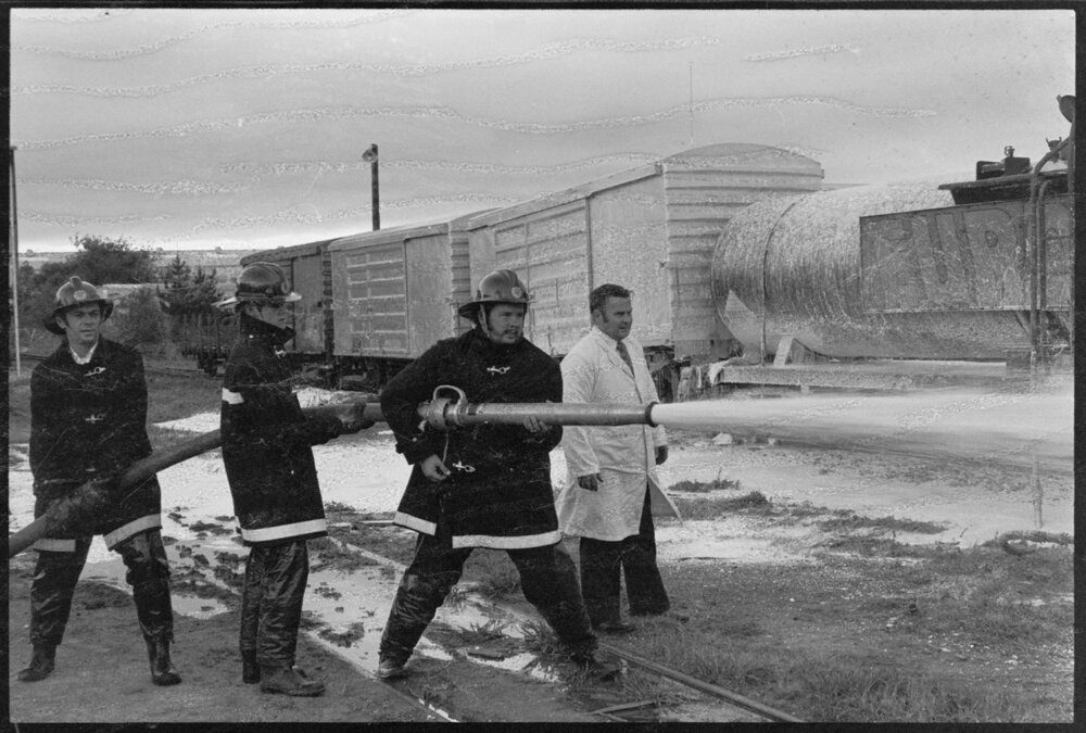 Date23 September 1974Reference Numberphoto gcc-25552DescriptionMount Maunganui Fire Brigade attend petrol spill from punctured rail tank car, at the Mount Maunganui marshalling yards. Not published.FormatNegativePhysical Description35mm black-and-white negative (3/3)Photographer/CreatorBay of Plenty Times