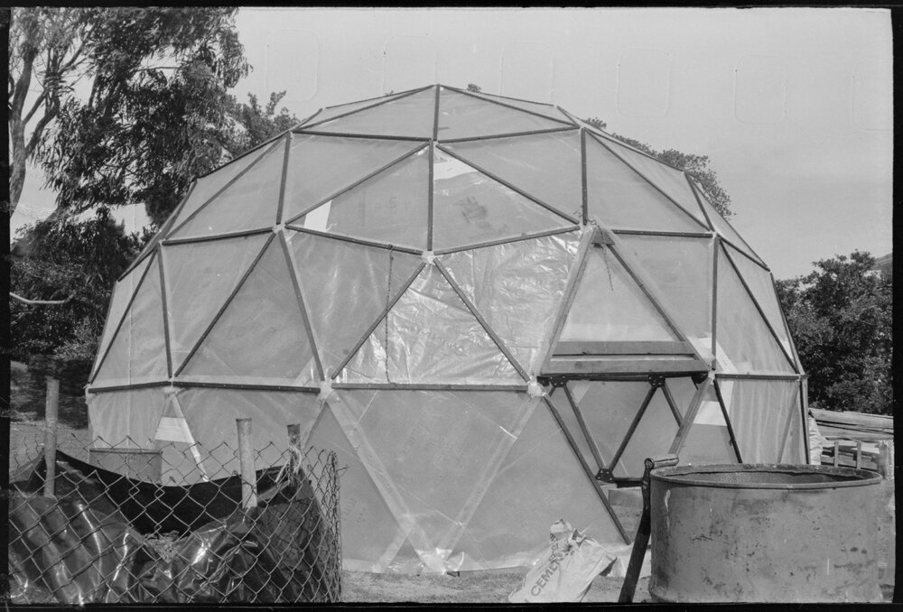 Date26 September 1974Reference Numberphoto gcc-25599DescriptionDome glasshouse built by Kevin Higgins of Mount Maunganui, made from polythene and timber scraps. Not published.FormatNegativePhysical Description35mm black-and-white negative (4/8)Photographer/CreatorBay of Plenty Times