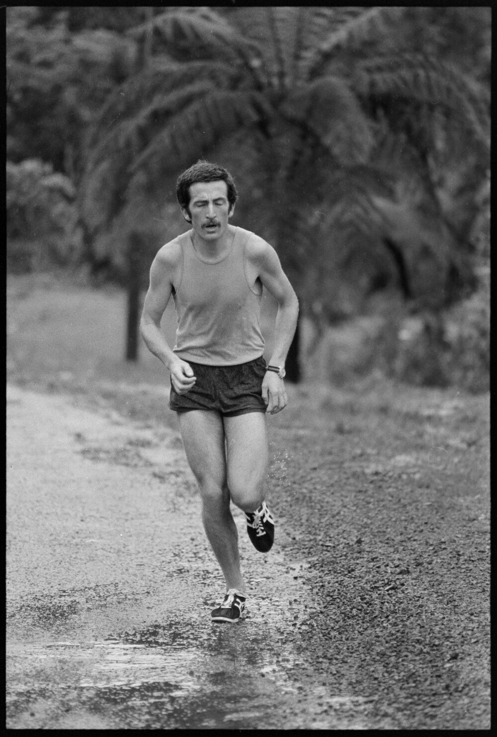 Date30 September 1974Reference Numberphoto gcc-25650DescriptionBob Gerrard of Tauranga Ramblers runs to Kaimai summit during the Morrinsville to Tauranga 10 lap relay. Not published.FormatNegativePhysical Description35mm black-and-white negative (6/11)Photographer/CreatorBay of Plenty Times