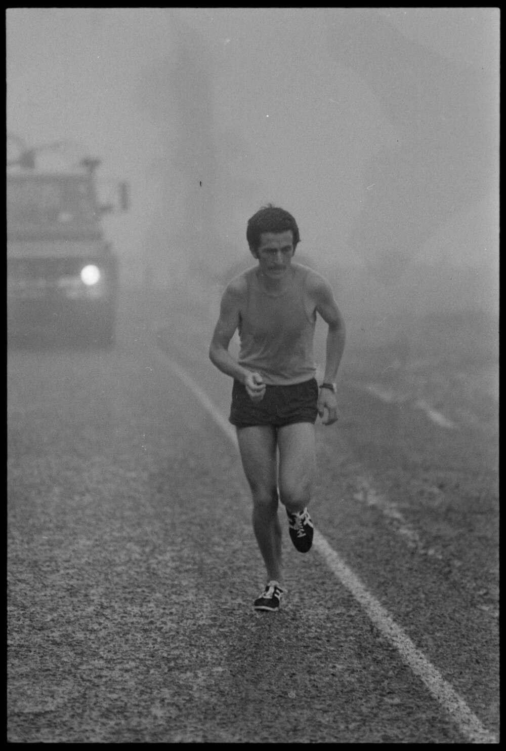 Date30 September 1974Reference Numberphoto gcc-25651DescriptionBob Gerrard of Tauranga Ramblers runs to Kaimai summit during the Morrinsville to Tauranga 10 lap relay. Not published.FormatNegativePhysical Description35mm black-and-white negative (7/11)Photographer/CreatorBay of Plenty Times