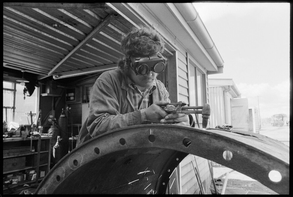 Date3 October 1974Reference Numberphoto gcc-25733DescriptionVolunteers restore 70-year-old locomotive engine. Not published.FormatNegativePhysical Description35mm black-and-white negative (8/12)Photographer/CreatorBay of Plenty Times