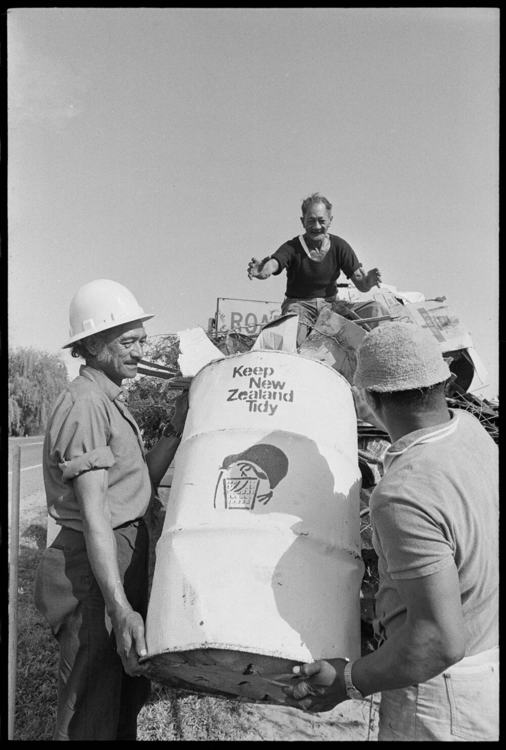 Date4 October 1974Reference Numberphoto gcc-25756DescriptionWorkmen from the Ministry of Works collect rubbish alongside roads in the Tauranga area. Pictured from left: Kingi Ningimu, Edward Thompson, and Ben Pihama. Published 4 October 1974.FormatNegativePhysical Description35mm black-and-white negative (1/6)Photographer/CreatorBay of Plenty Times