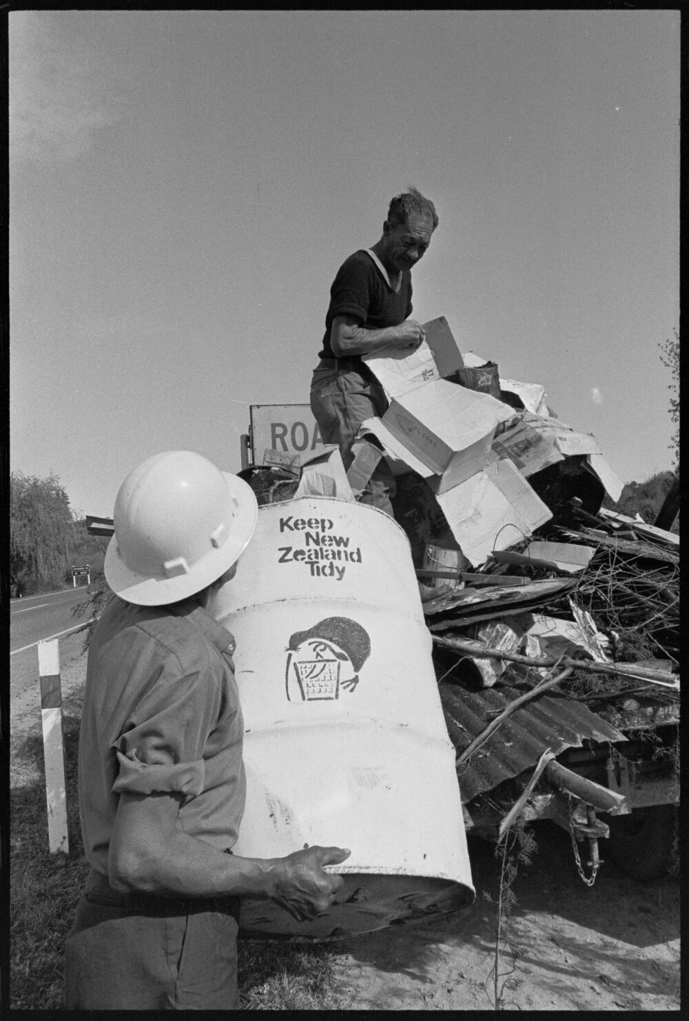 Date4 October 1974Reference Numberphoto gcc-25761DescriptionWorkmen from the Ministry of Works collect rubbish alongside roads in the Tauranga area. Pictured from left: Kingi Ningimu, Edward Thompson. Not published.FormatNegativePhysical Description35mm black-and-white negative (6/6)Photographer/CreatorBay of Plenty Times