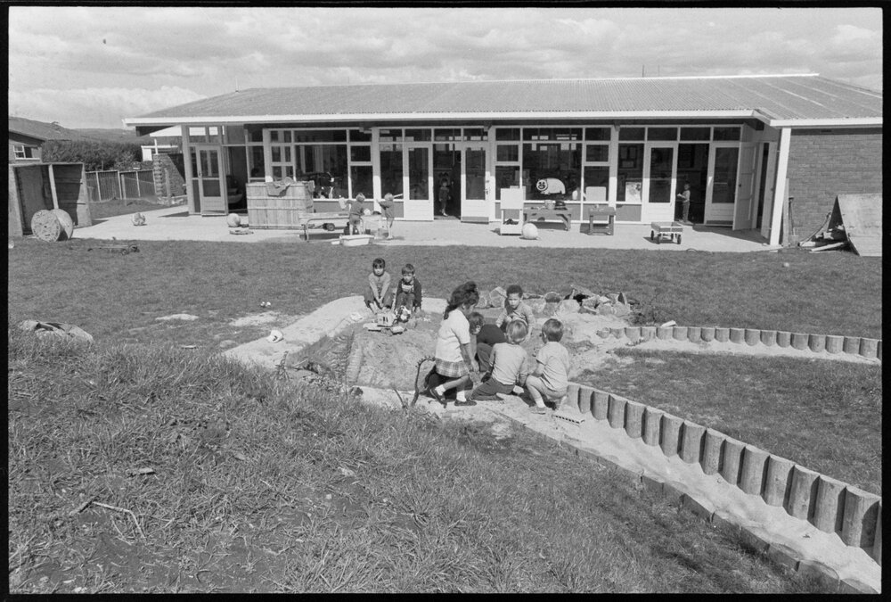 Date5 October 1974Reference Numberphoto gcc-25762DescriptionChildren playing in sand pit at Maungatapu Kindergarden. Photo taken prior to installation of climbing frame and swings. Not published.FormatNegativePhysical Description35mm black-and-white negative (1/3)Photographer/CreatorBay of Plenty Times